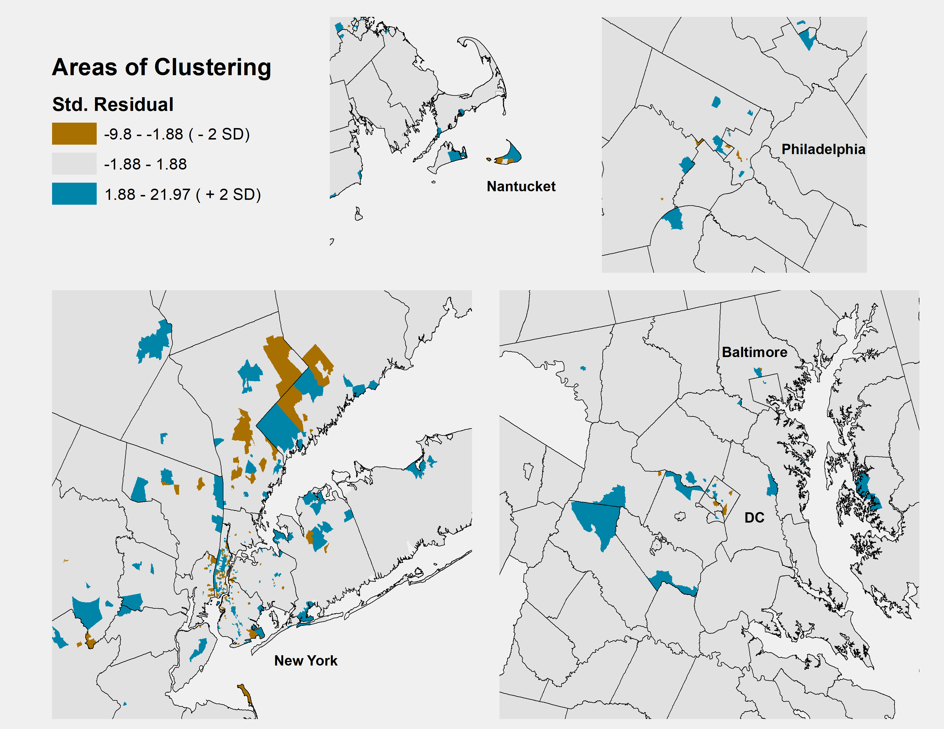 Examples of spatial analyses I have conducted of social and economic data at different geographic levels: